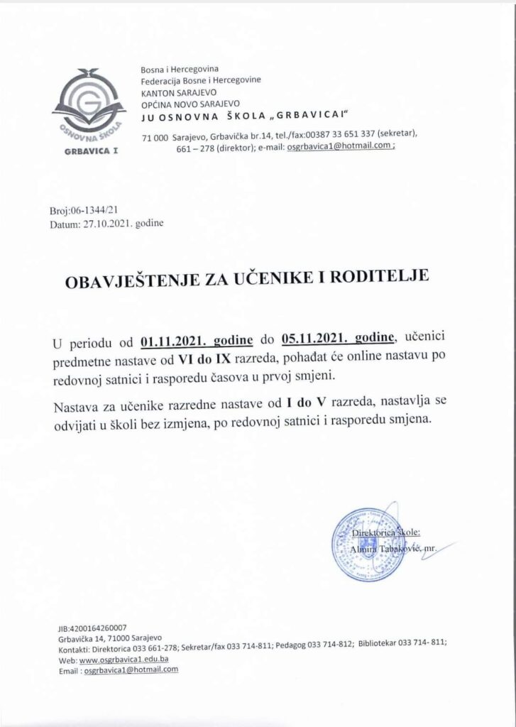 AKTUELNO, DOKUMENTI, RODITELJI, UČENICI