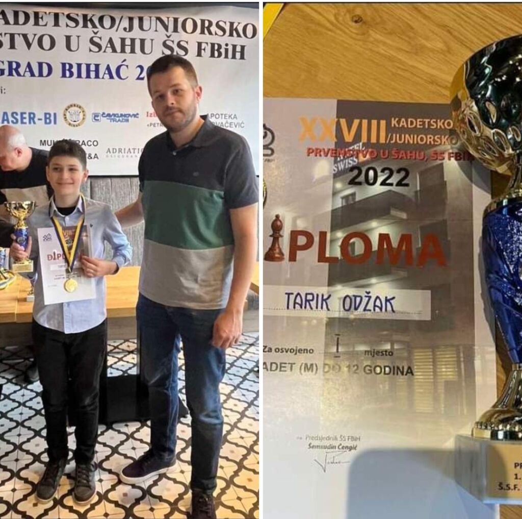 ♟️ USPJEH NAŠIH UČENIKA ✨🥇Na kadetskom prvenstvu FBiH u šahu, održanom u Bihaću, naš učenik Tarik Odžak osvojio je zlatnu