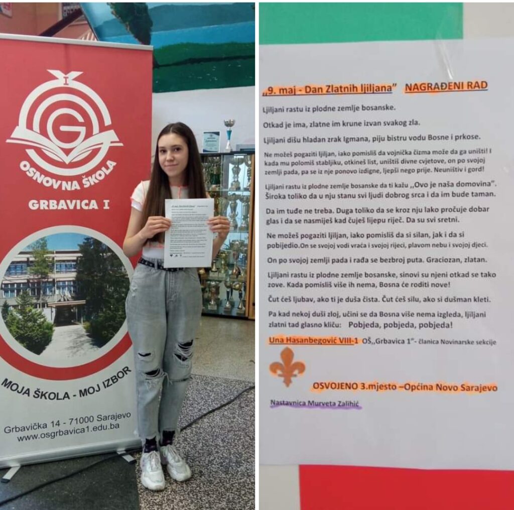📚📝Na nagradnom konkursu za najbolji literarni rad, na nivou Općine Novo Sarajevo ,povodom obilježavanja 9.maja Dana Zlatnih ljiljana i Dana