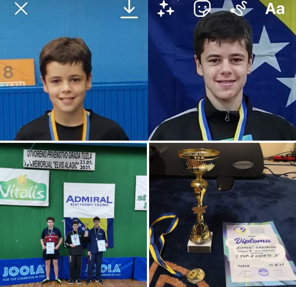 👏👏🥇Benjamin Zijadić, prvak🏆🏓Naš učenik Benjamin Zijadić nastavlja nizati uspjehe. On je u subotu odbranio titulu prvaka u kategoriji stonoteniserskih kadeta