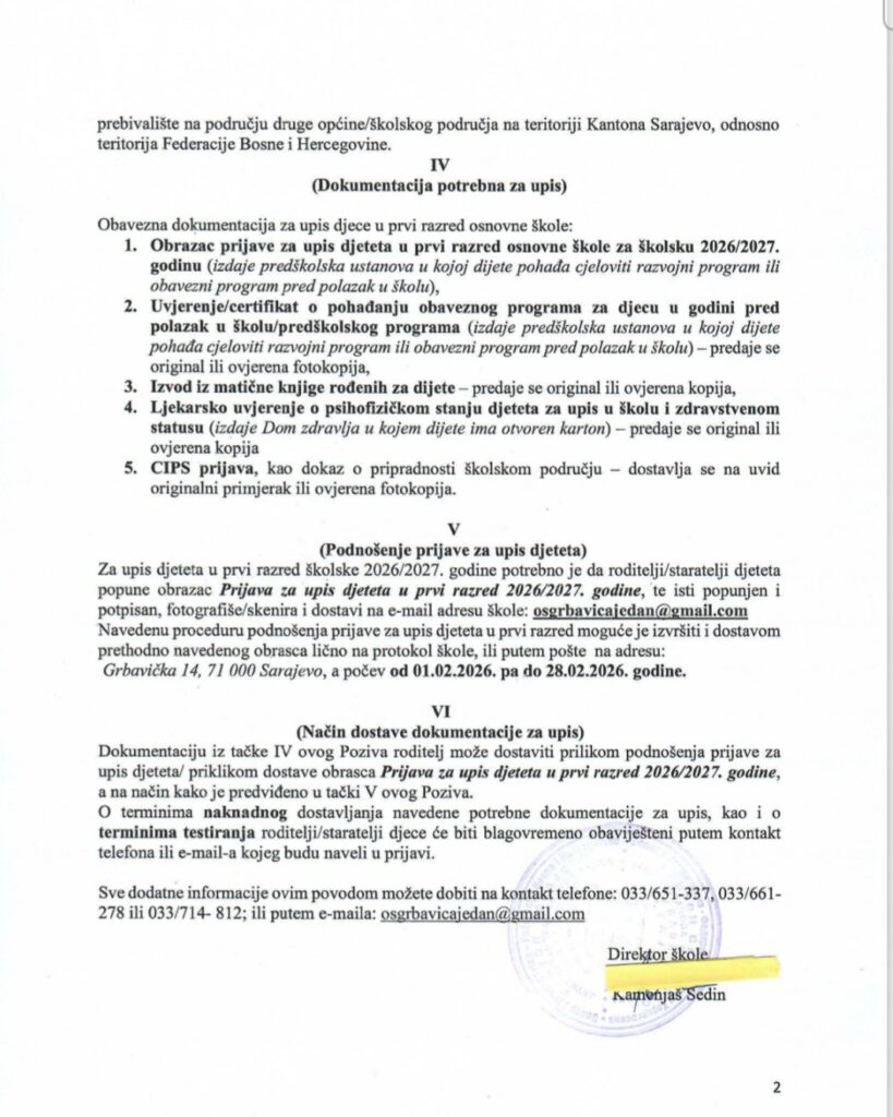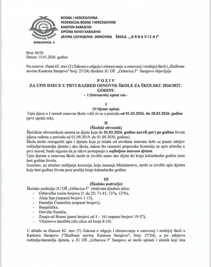 Upis u prvi razred za školsku 2026/2027.godinu Post author:Osg1 Post published:22 Januara, 2026 Post category:AKTUELNO / RODITELJI Post comments:0 Comments You Might Also Like POSJETA MUZEJU ILUZIJA 19 Marta, 2022 Moja okolina 15 Aprila, 2023 Radionica filcanja vune🌸 22 Novembra, 2021 Komentariši Poništi odgovorCommentEnter your name or username to comment Enter your email address to comment Enter your website URL (optional) Sačuvaj moje ime, email i web stranicu u ovom browseru za buduće komentare. Δ